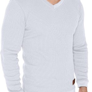 Men’s Long Sleeve Waffle Thermal Shirt Top, Knitted Sweater, Sweatshirt for Men