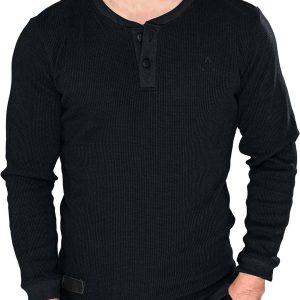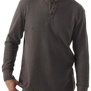 Men’s Waffle Themal Henley Shirt – Charcoal