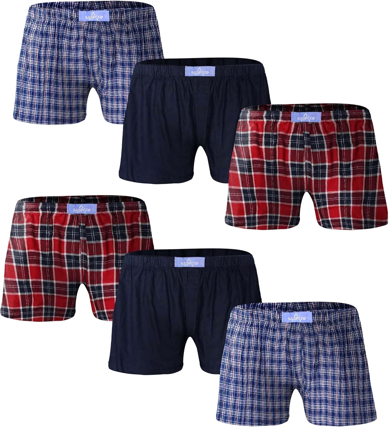 BLUSPEAR Cotton Boxer Shorts for Men Multipack, Tag-Free Woven Boxer Shorts, Breathable Plaid Boxers, Cotton Underwear men.