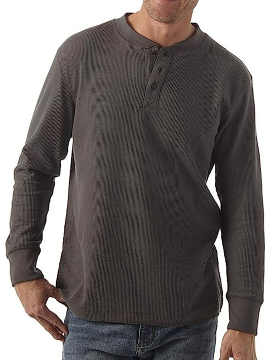 - TEXTURED WAFFLE FABRIC. Made with soft, waffle knit fabric, this long sleeve shirt is ideal for cooler temperatures. From the backyard yardwork to running errands, this closet staple is a men’s classic.